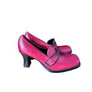 Vintage New Tothemax Red/Burgundy Chunky Block Heel Square Toe Y2K 90s size 8