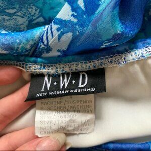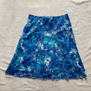 90sLayered midi skirt with multi tone bluePatterned overlay and white slip under