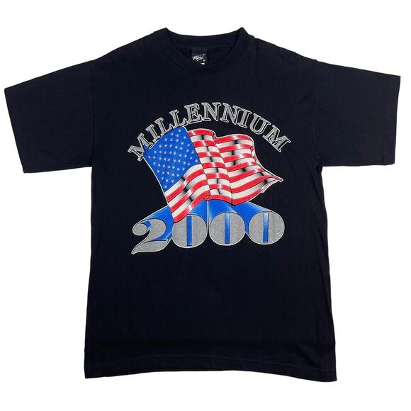Vintage New Years Celebration Millennium USA 2000 Y2K Flag Shirt Size Medium