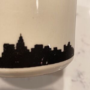 The mug is a subtle off-white ceramic with a black graphic which has stood in good condition through the years. A bit of paint has worn in spots. See all pics. The artist is a New York City native, so you know the love is there. I love New York! My family is from the Bronx!! So my heart is there!! This is perfect for a NYC lover!!