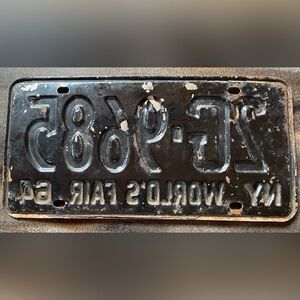 Vintage New York State Worlds Fair License Plate Tag Man Cave Nostalgia