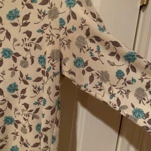 Vintage New York Style Brushed Long Sleeve Tee, Cream with Blue Flowers