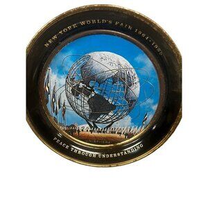 Commemorative plates featuring the iconic Unisphere from the 1964-1965 New York World's Fair. Showcases historical significance and intricate design.
