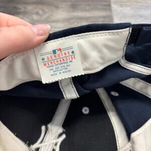 Vintage New York Yankees MLB Blue Mens OS Script Strapback Sports Baseball Cap In good pre-owned condition, team logo embroidered adjustable strap velcro at the back 100% cotton Made in Macau. athletic athleisure sporty baseball cap,