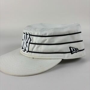 Vintage New York Yankees New Era Fitted Size 8 Pillbox Hat Y2K White Pin Striped
