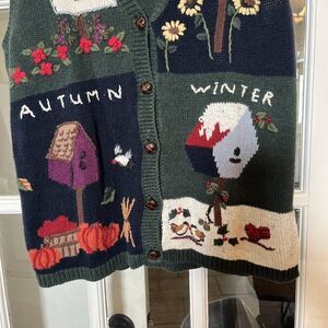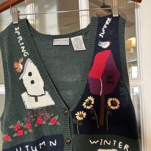 Vintage New Look Sweater Vest Bird House M Embroidered Blue Cottage Core Granny