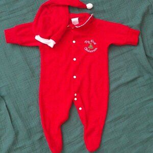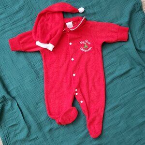 Vintage Newborn Red and White 'My First Christmas' Bodysuit with Matching Hat