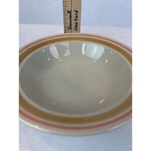 A charming vintage bowl from Newcor, featuring retro stripes in yellow and red. This stoneware piece is a lovely addition to any collection.