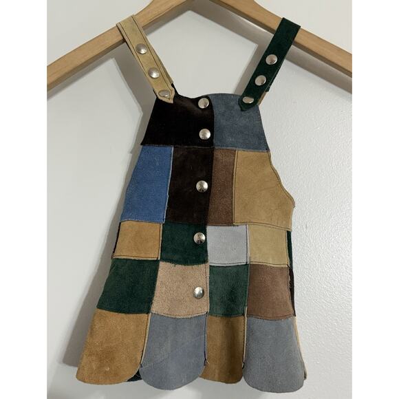 Vintage Newman Marcus Girls Leather Patchwork Pinafore Jumper Suede Dress 12-24M