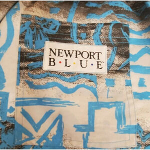 Pair Vintage Newport BLUE Men's 90s Swim Trunks in Teal & Black Design ~ Size Large. They are in EXCELLENT Condition and still have that 'Crisp Newness' to them as if never worn.