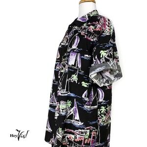 * Special Feature: Hang out looking cool in this black cotton tropical print shirt showing palm trees and sail boats