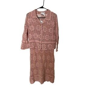 Vintage Newport News dusty pink crochet dress with matching cardigan /overpiece
