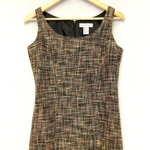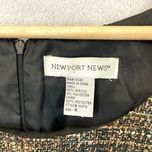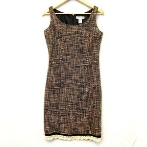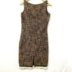Vintage Newport News Tweed Sheath Dress Size 4 Knee Length Brown Lace Trim Retro
