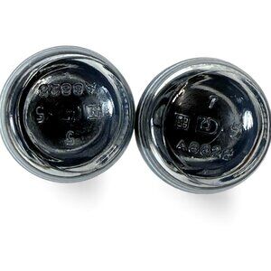 FEATURES: Mid-century charm with black twist-on tops and frosted-style glass featuring white scenic graphics including Rainbow Bridge, American Falls, Prospect Point, Horseshoe Falls, and more. Both pieces are marked on the base with A8828 and maker symbols.