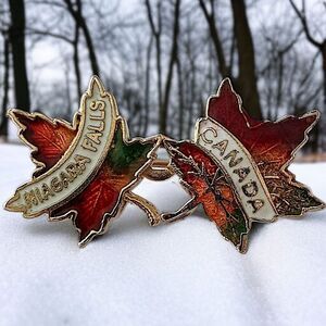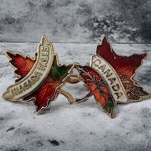 Vintage Niagra Falls Canada Pin Brooch Souvenir Double Maple Leaf Enamel Tourist. Condition is pre-owned with no chips or cracks. Unbranded. Measures about 1.25" wide. Please see all photos for detailed condition.