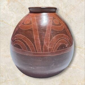 Nicaragua Vase Vintage Pottery Rust Earth Tone Etched Geometric Designs.