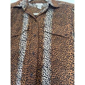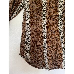 Key words: work office wear vintage vtg blouse top shirt button up 90s 80s animal print petite small