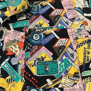 Vintage Nicole Miller 1990 Limited Shopaholic Print Silk Button Down NYC Shirt