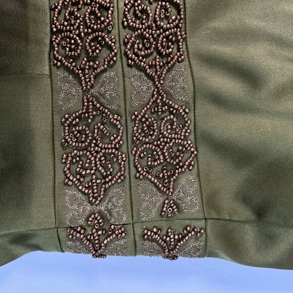 Vintage Nicole Miller Collection Satin Slip Dress Green Beaded Embroidery Silk 6