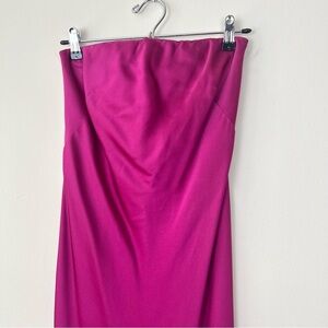 Vintage Nicole Miller Satin Strapless Maxi Slip Dress Magenta. some very light pulls and one small mark on the front, shown in pics. length is 46”