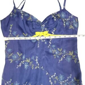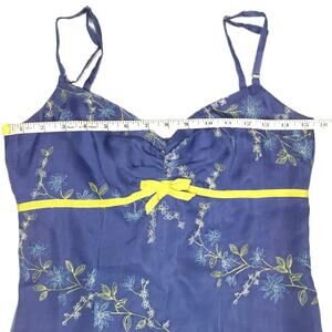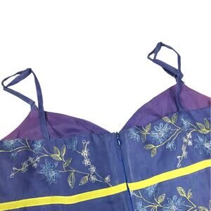 Features: vintage, sweetheart neckline, adjustable spaghetti straps, back zipper closure, floral embroidery, lined, vtg, fashion, spring, summer, 90s, 1990s, y2k, flowers, sleeveless, ribbon under bust, bow,