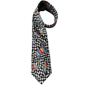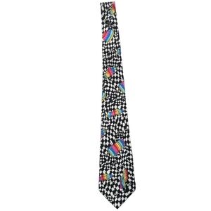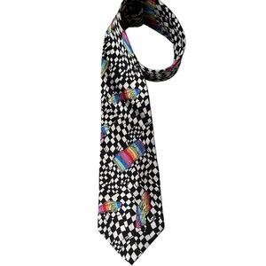 Vintage Nicole Miller for Corvette Black & White Checked 100% Silk Tie