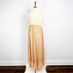 Vintage Nightgown Dusty Rose Pink and Off White Maxi Val Mode Size L/XL
