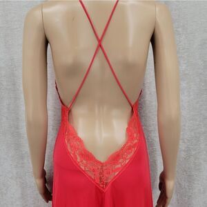 Vintage Nightgown Elegant Red Spaghetti Strap Slip Dress Open Back Lace