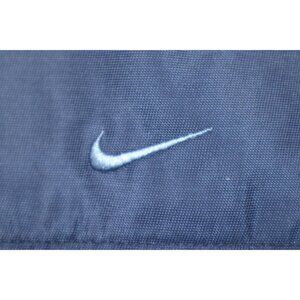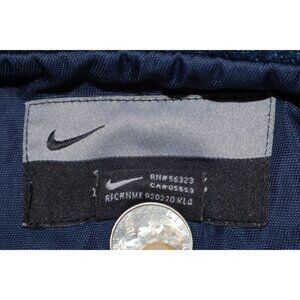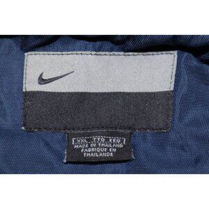 This Nike Men’s 2XL blue windbreaker is a versatile 2-in-1 jacket featuring a full zip front, stand-up collar, adjustable hood, and a removable quilted liner for warmth. The solid blue outer shell includes embroidered Nike Swoosh logos and functional front pockets.