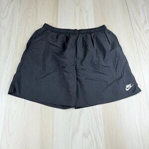 Vintage Nike 80's Mens Black Lined Pockets Slit Hem Logo Swim Shorts Size Medium