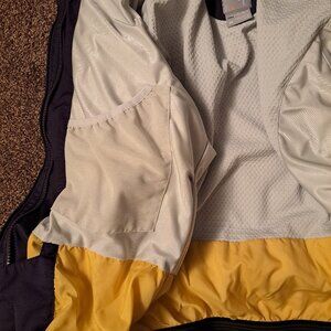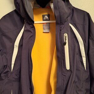 Colorway: The primary colors are a dark purple/raisin for the shell and a bright yellow for the internal fleece/hood