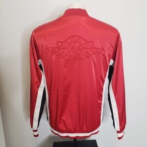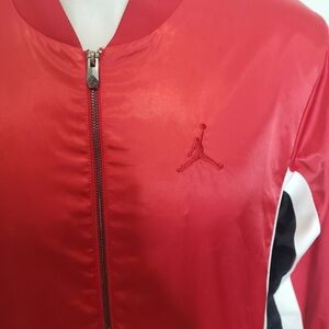 Vintage Nike Air Jordan Satin Full Zip Red Y2K Bomber Jacket Mens Size MEDIUM.