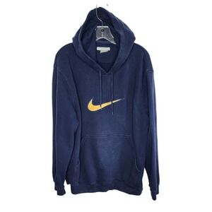 Vintage Nike BIG Center SWOOSH Blue Hoodie Embroidered Y2K Large