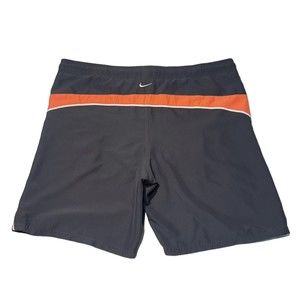 Vintage Nike Board Shorts Mens Gray Orange Drawstring Board Shorts Med