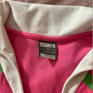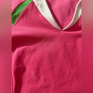 Size small - Pink color with green & white details - Great condition, no rips or stains just minor pilling at neckline and some tiny pulls(shown in last pics) from regular wear