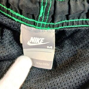Stylish Nike board shorts with vibrant neon green flame design. Ideal for swimming and beach activities.