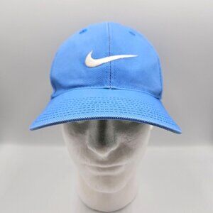 Vintage Nike Hat Cap Carolina Blue Adjustable Snapback White Swoosh Cotton 90s