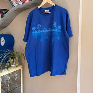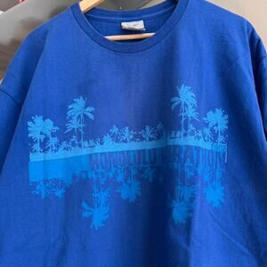 graphic tee, Honolulu Marathon, vintage athletic, blue cotton, oversized, race event, sportswear, retro style, marathon memorabilia, casual wear