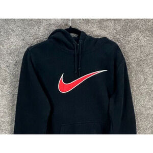 Nike Hoodie Mens Medium Black Red Center Swoosh Logo Pullover Sweatshirt