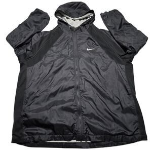 Vintage Nike Jacket Mens Large Black Hooded Windbreaker Lined 90's Full-Zip