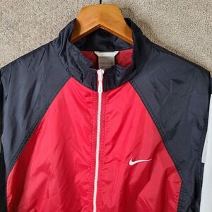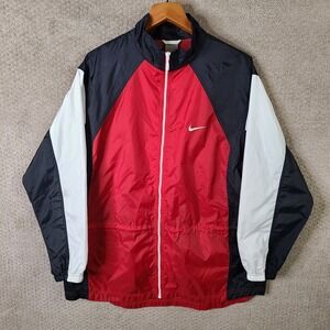 Vintage Nike Jacket Mens XL Red Black White Track Athletic Full Zip Windbreaker
