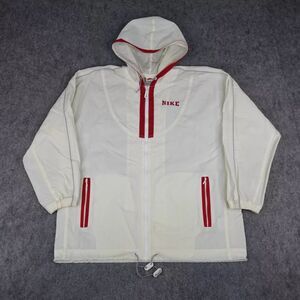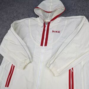 Vintage Nike Jacket Mens XXL White Red Full Zip Track Windbreaker Anorak Swoosh 90