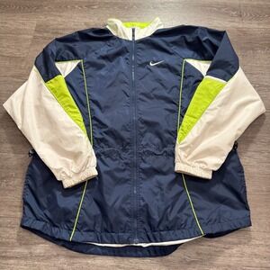 Vintage Nike Jacket Women's Large Blue Green Swoosh Full Zip Windbreaker Y2K