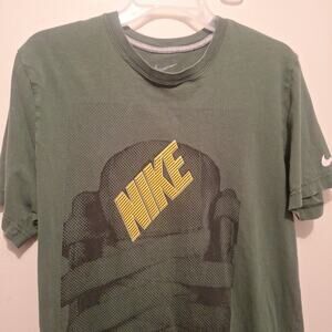 Vintage Nike Men T-Shirt L Green Logo Shoe Lace Graphic Short Sleeve Tee