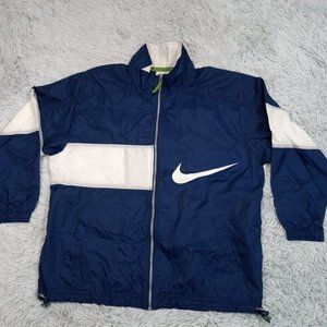 Vintage Nike Mens Jacket Blue XL Windbreaker Pockets Swoosh Athletic Activewear