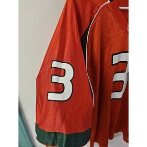 The product is a vintage Nike Miami Hurricanes Frank Gore #3 ACC Jersey for men in size M. This authentic football jersey is officially licensed and made in South Korea. The jersey features the Miami Hurricanes team colors, orange, making it the perfect item for fans of the team looking to show their support during the regular season.