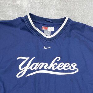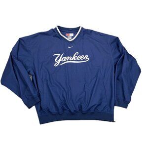Vintage Nike New York Yankees Windshirt Men XL Blue Windbreaker Elastic Hem Side Zip