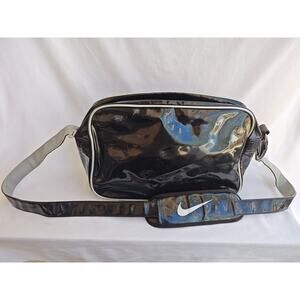 Vintage Nike Patent Leather Look Black Silver Messenger Gym Soccer Shoulder Bag