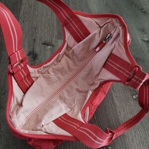 This Nike tote bag features a vibrant red color and a sporty design, making it perfect for casual outings. Made from lightweight synthetic material, it offers comfort and ease of use with its shoulder straps.