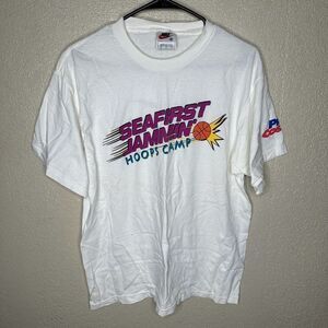 Vintage Nike Seattle Sonics Seafirst Jammin Hoops Camp T Shirt Made In USA Mediu